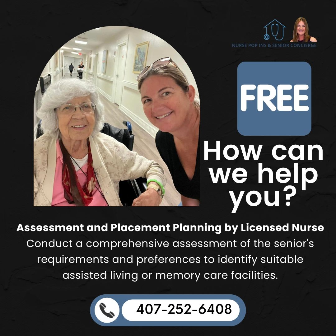 The Nurse Pop-In service offered by Nurse Pop-Ins & Senior Concierge provides personalized and compassionate placement support and senior advisor services.
